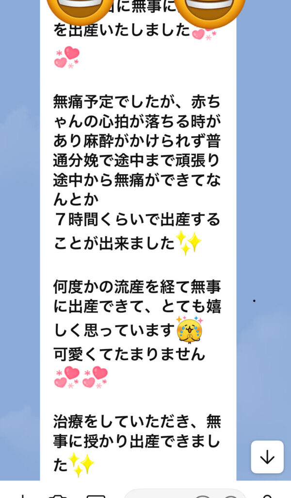 鍼灸治療や生活習慣の見直しで妊活を行っていた患者さまから嬉しい出産の連絡がありました。ご出産おめでとうございます🎊産婦人科に通院しながらの自然妊娠からの出産です。