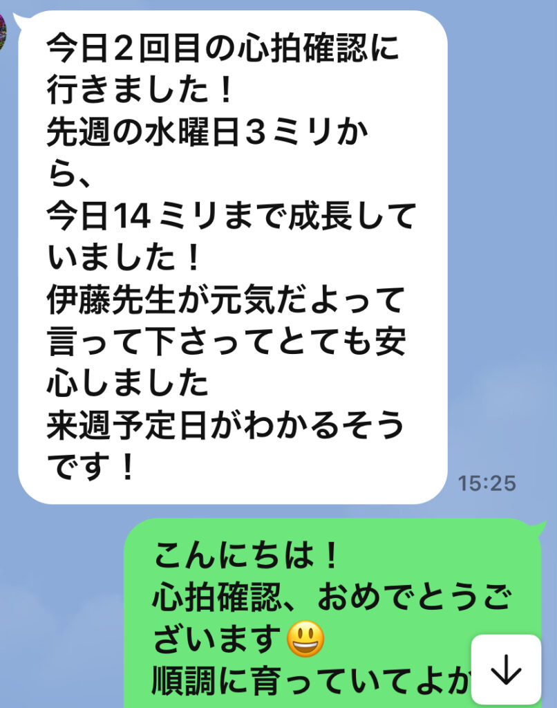 心拍確認おめでとうございます!順調に赤ちゃん育っていて安心です。悪阻など辛い時もありますが赤ちゃんがいる証なので頑張っていきましょう。